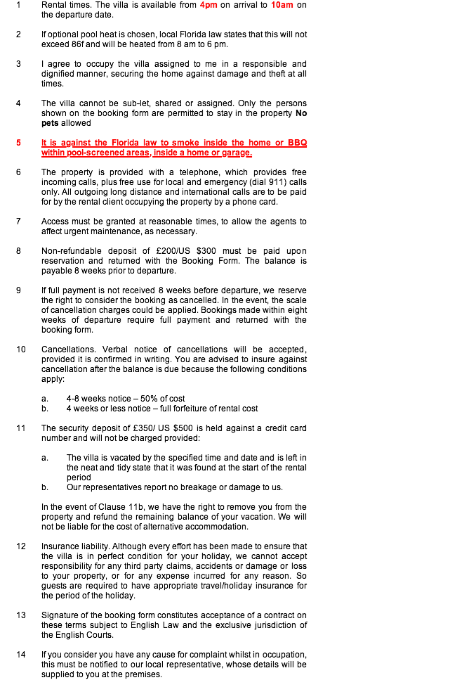 Platinum Villas Terms & Conditions
